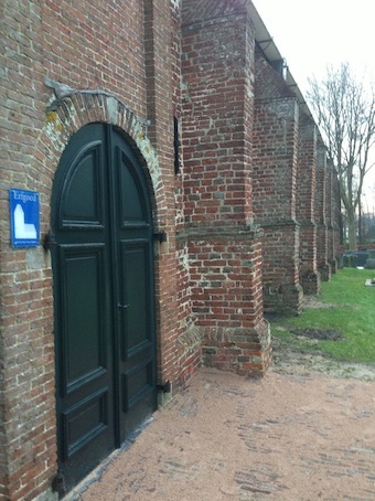 De kerk heeft nu één ingang, die geplaatst is in de westelijke travee aan de zuidzijde. Oorspronkelijk heeft de kerk drie ingangen gekend, namelijk aan de noord- en zuidzijde en in het midden van de westzijde. De ingangen aan de zuid- en westzijde zijn met een grote steensoort dichtgemetseld, maar nog wel herkenbaar. De ingang aan de noordzijde is oorspronkelijk met een kleine steensoort dichtgemetseld) maar deze steen is bij de restauratie weer grotendeels verwijderd. Het is niet duidelijk, wanneer de verschillende ingangen zijn dichtgemaakt. Aan de oostkant van de koorsluiting is een korf. bochtige nis aanwezig. Deze nis is tamelijk hoog aangebracht, terwijl er onder deze hoge nis weer een kleine nis is aangebracht. Deze nis heeft waarschijnlijk dienst gedaan om er een dodenlantaarn in te plaatsen. Dit dodenlicht diende waarschijnlijk om de boze geesten te verjagen.