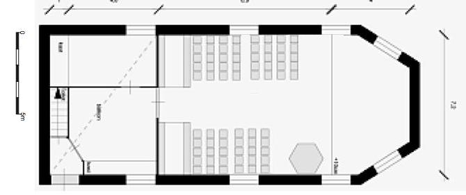 In de kerk staan geen vaste banken of stoelen waardoor meerdere opstellingen mogelijk zijn.
